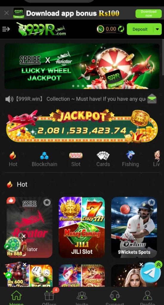 999R also allows betting on sports, including cricket and football. You can place bets on your favorite teams and win money based on match outcomes.